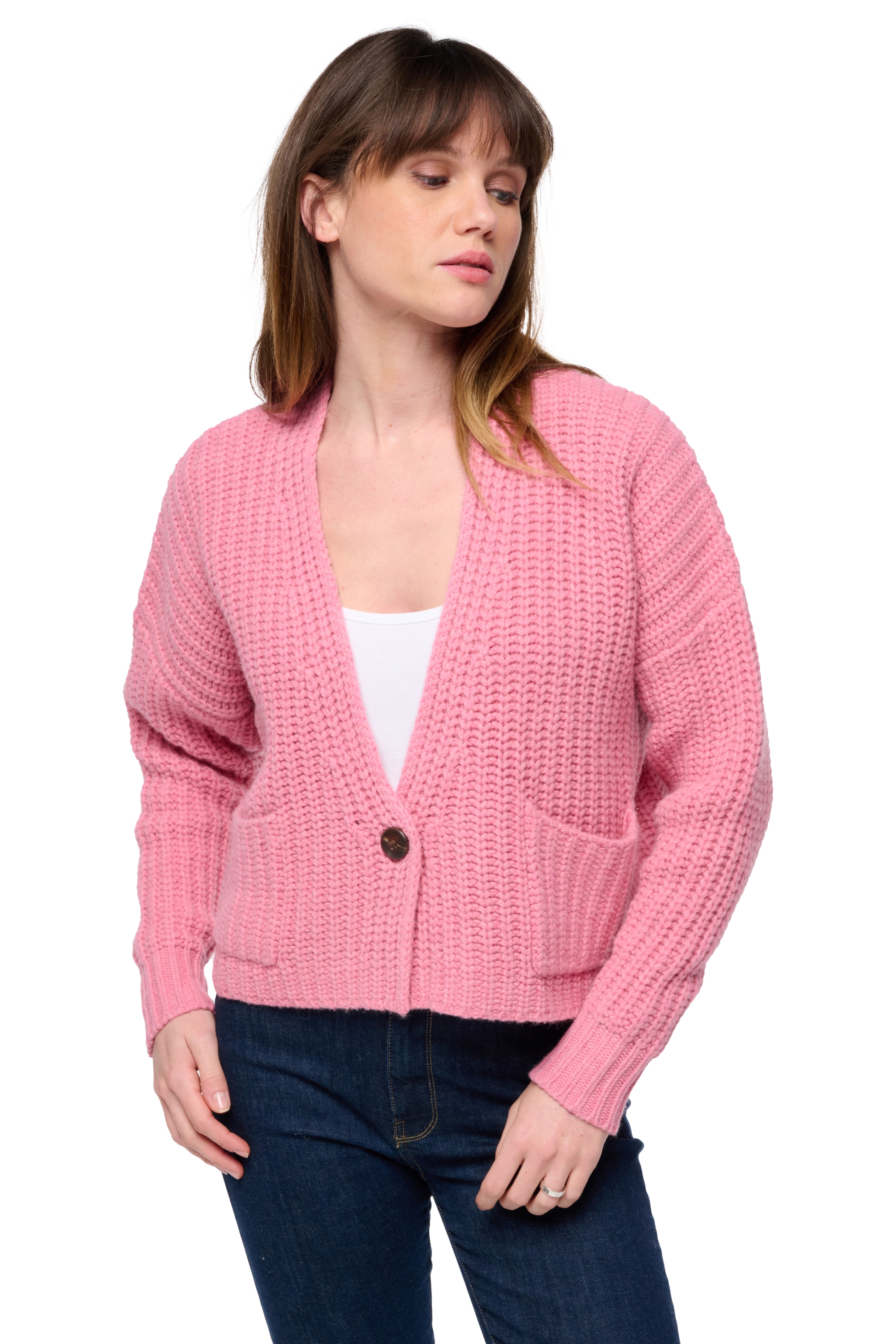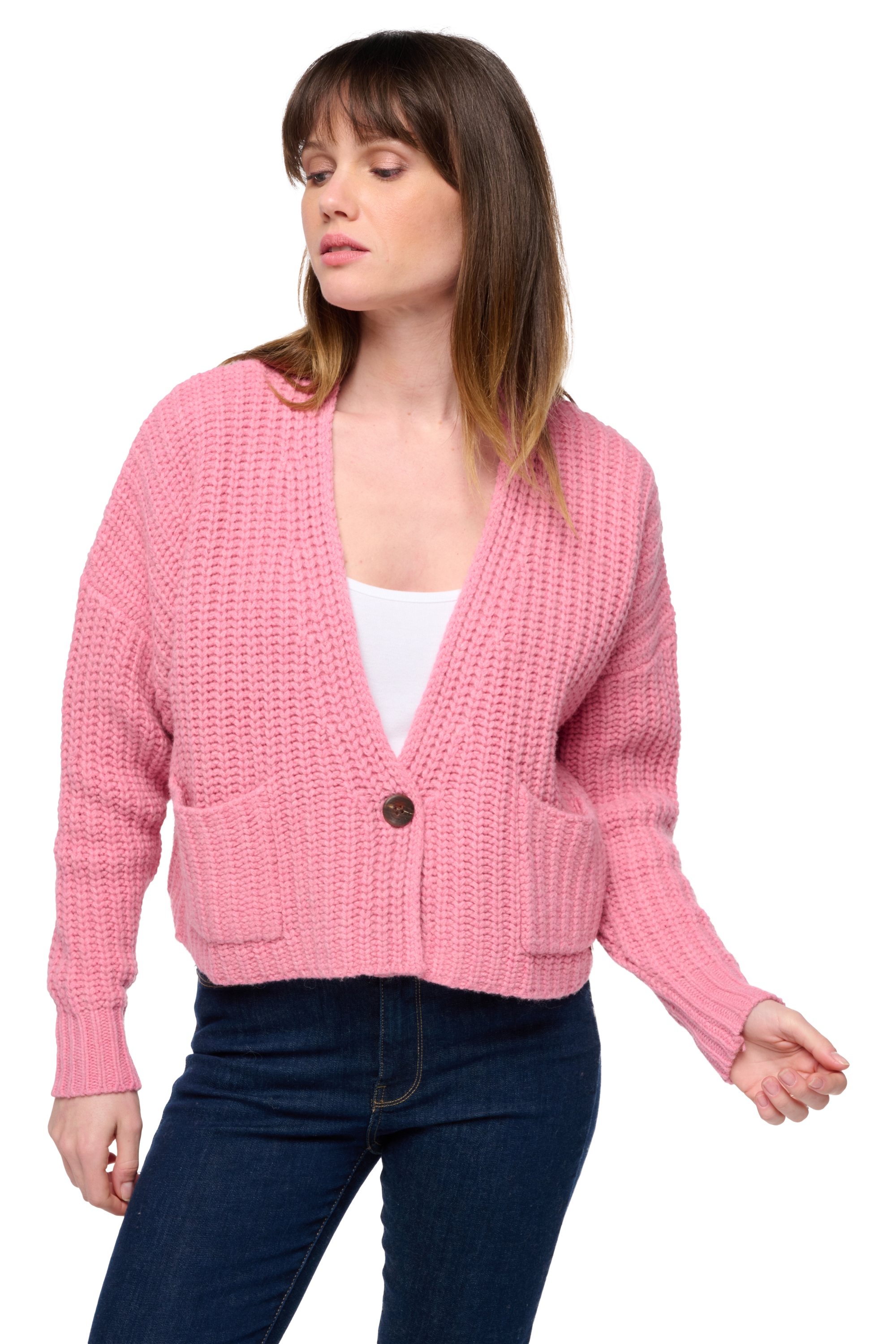 Spesso cardigan in lana di yak, taglio crop, volutamente corto, perfetto con pantaloni a vita alta.... Più info