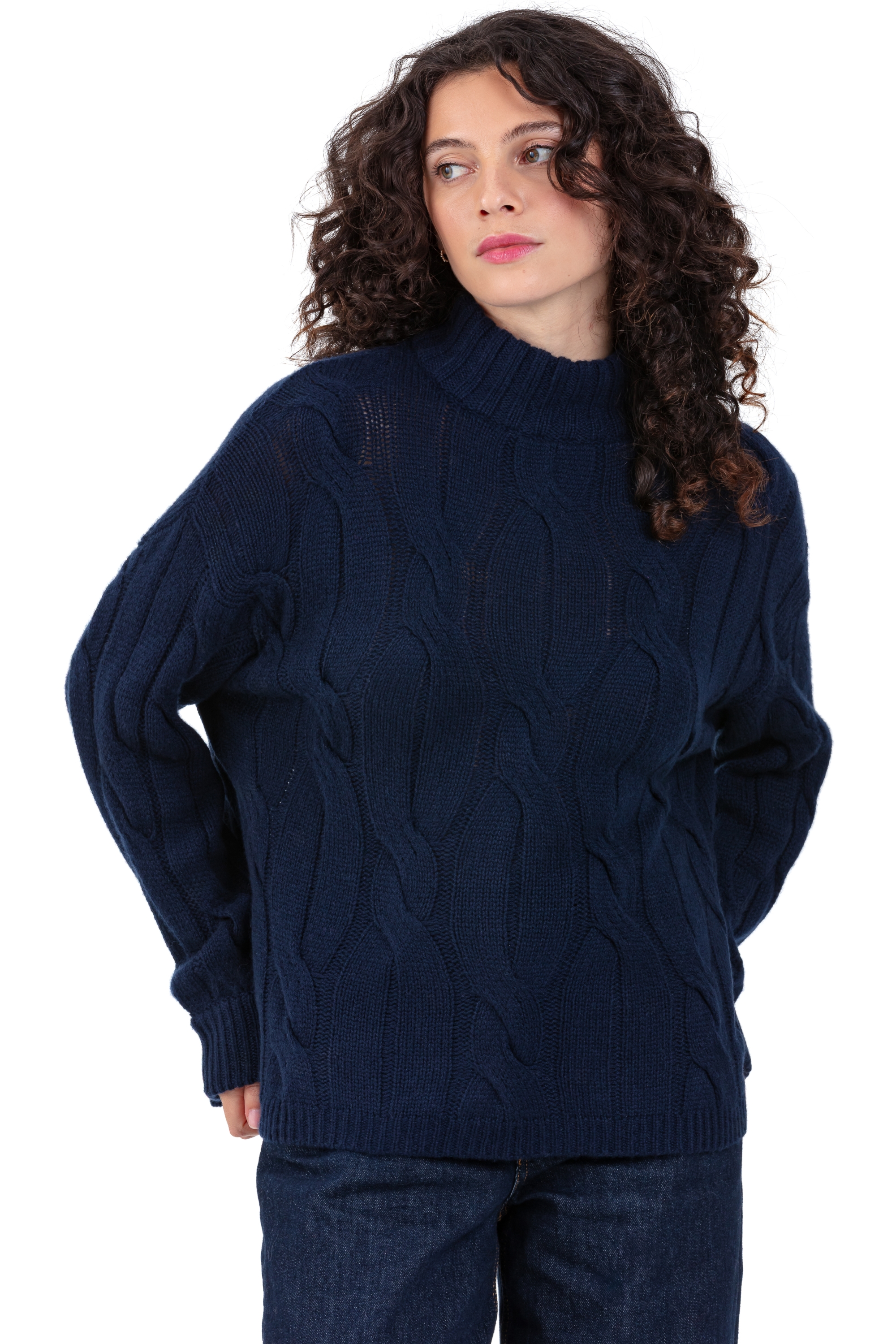 Leggero e stiloso, il maglione da donna in cashmere PENNY conquista per la lavorazione a trecce all-over e per il taglio oversize. Realizzato in puro cashmere 6 fili e lavorato a passo largo finezza 7, offre una maglia vaporosa e comoda. Il collo a lupetto e i suoi 335 g di cashmere lo rendono un capo perfetto per le giornate fresche.