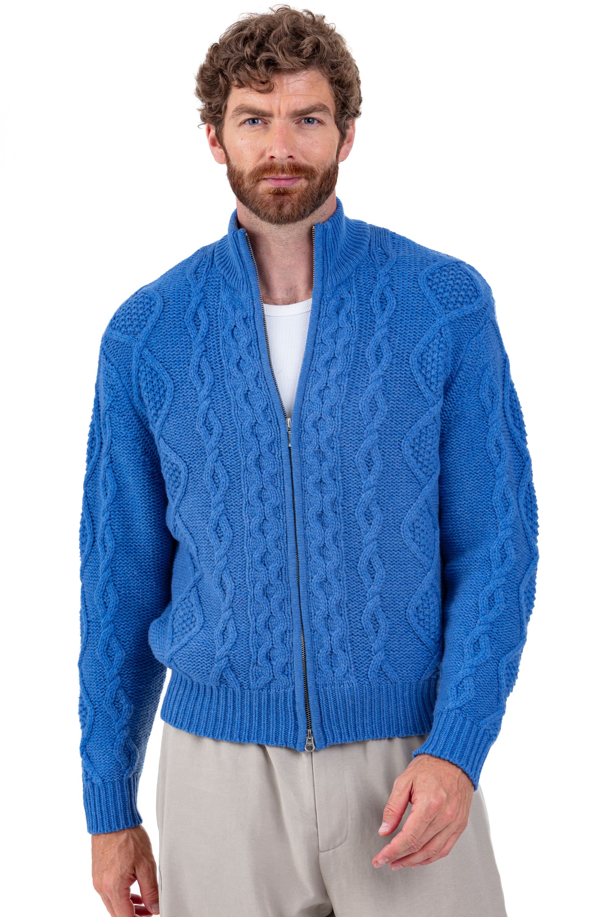 Originale e raffinato, il cardigan da uomo PATMOS conquista per la lavorazione a trecce e il collo a lupetto. Lavorato in puro cashmere 10 fili, offre calore e struttura. La chiusura con doppia zip e le tasche laterali lo rendono un capo pratico ma allo stesso tempo elegante.