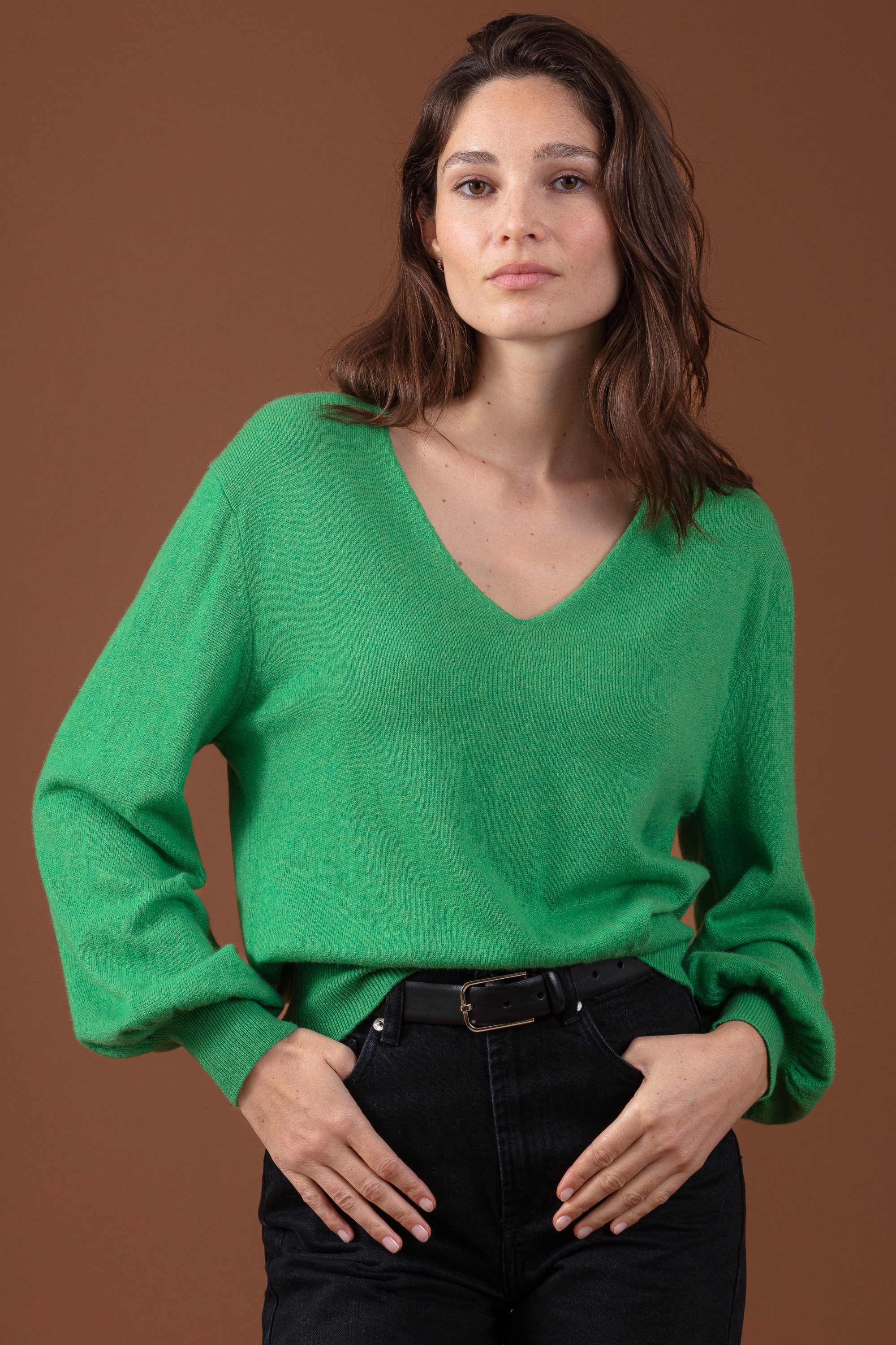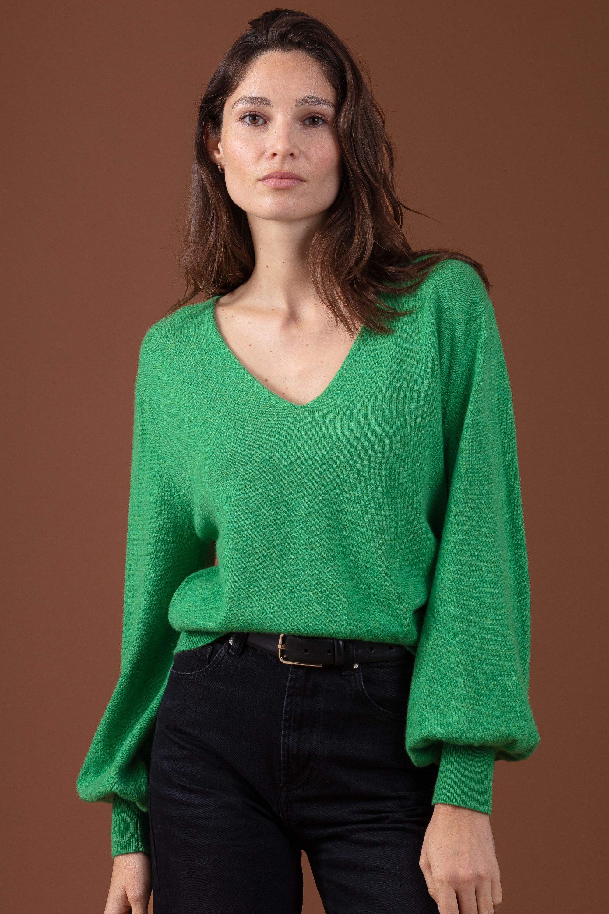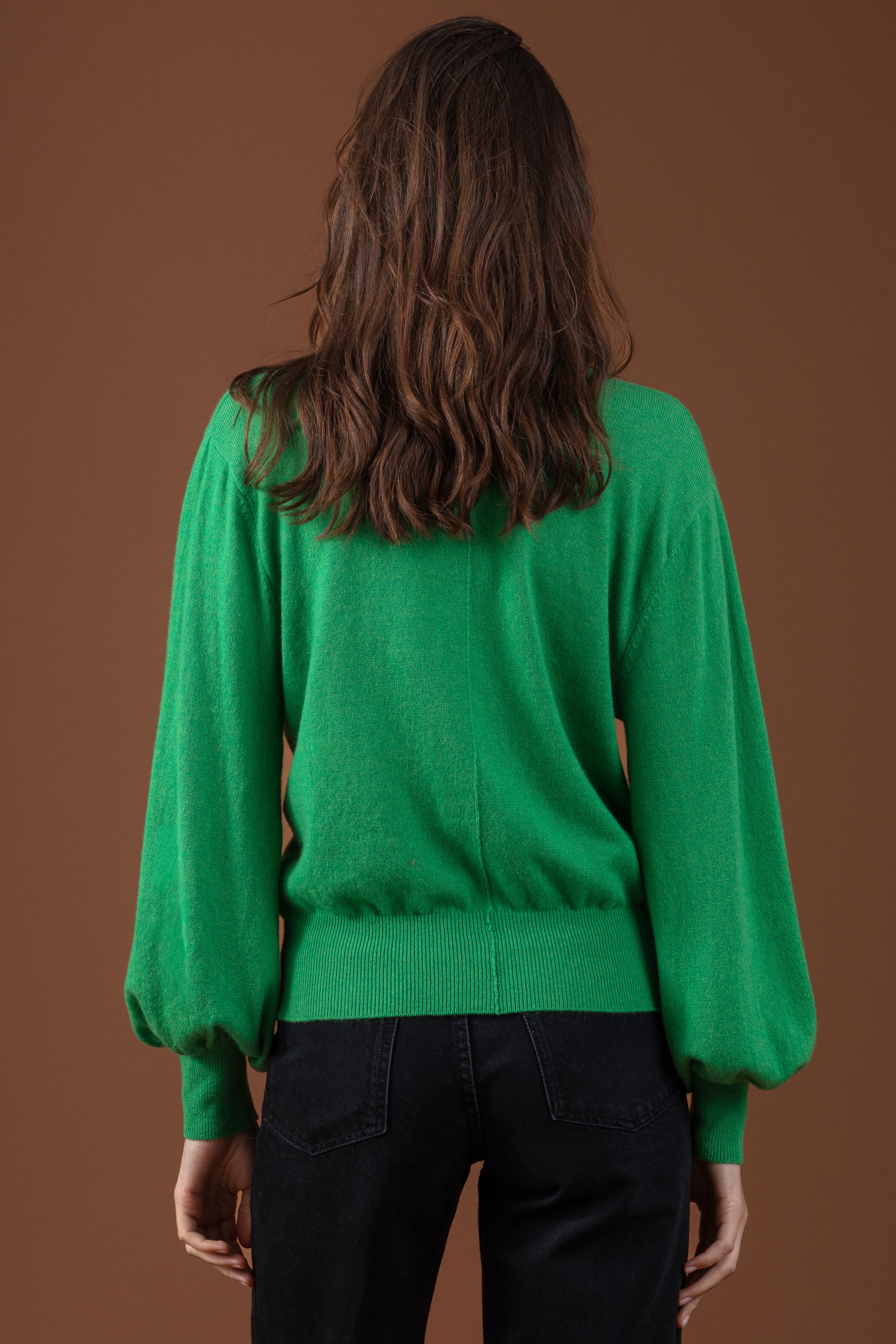 Scollo a V con maniche a palloncino realizzato in cashmere 100% - l’eleganza che incontra la semplicità!