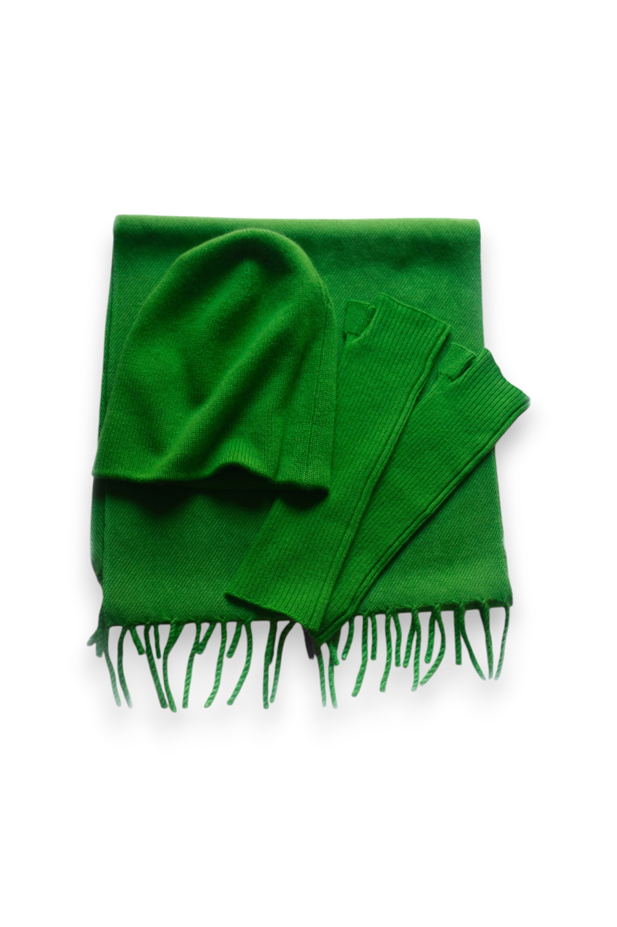 Set di accessori 100% cashmere composto dalla sciarpa REVE (6 fili intrecciati), dai guanti RAIN (2 fili a coste) e dal berretto DONNA (4 fili), la combinazione perfetta per combattere il freddo invernale. Da regalare o da regalarsi!