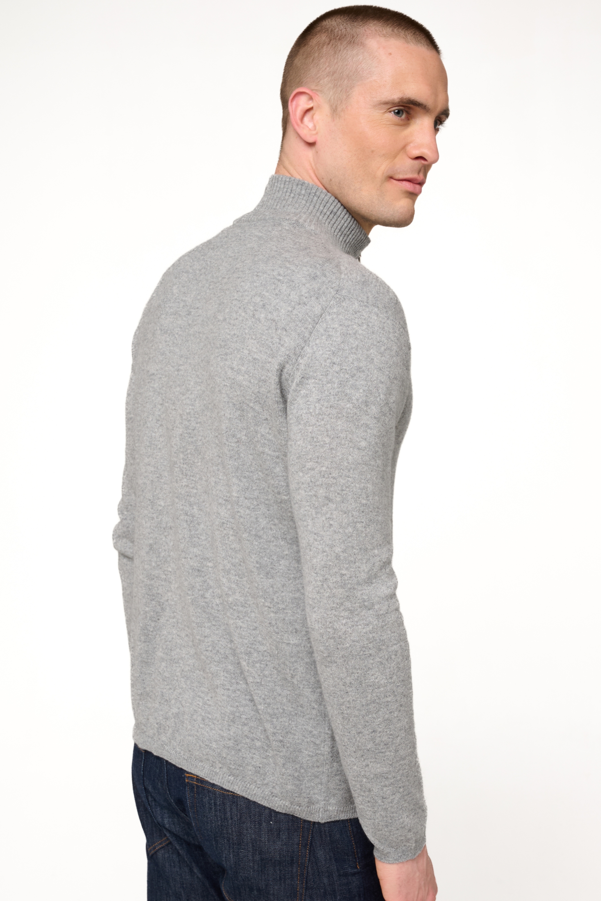 Cardigan con collo a lupetto a doppio zip : si apre verso l'alto e verso il basso. Rifiniture a coste da 1,5 cm ai polsi ed alla base della maglia.