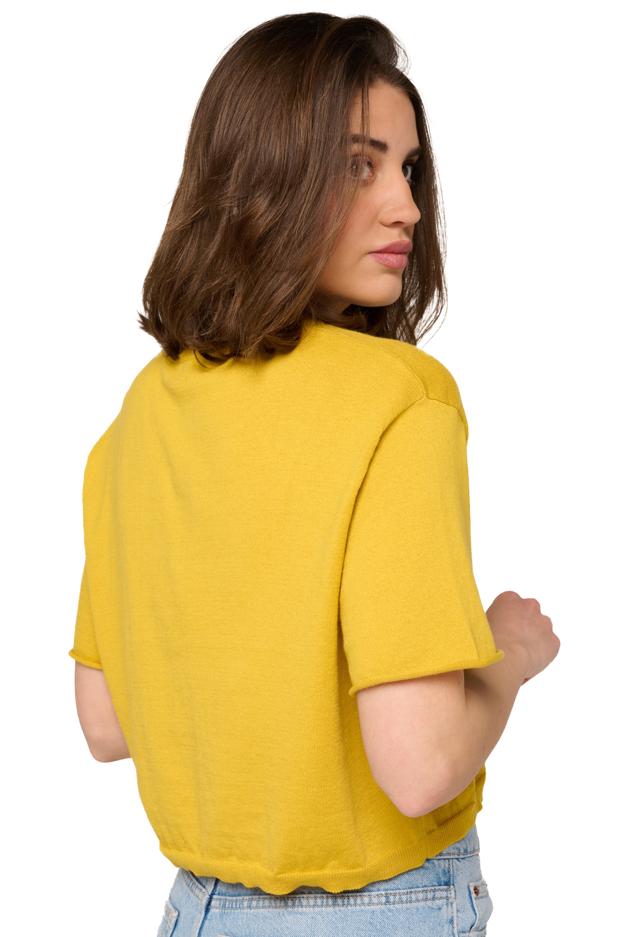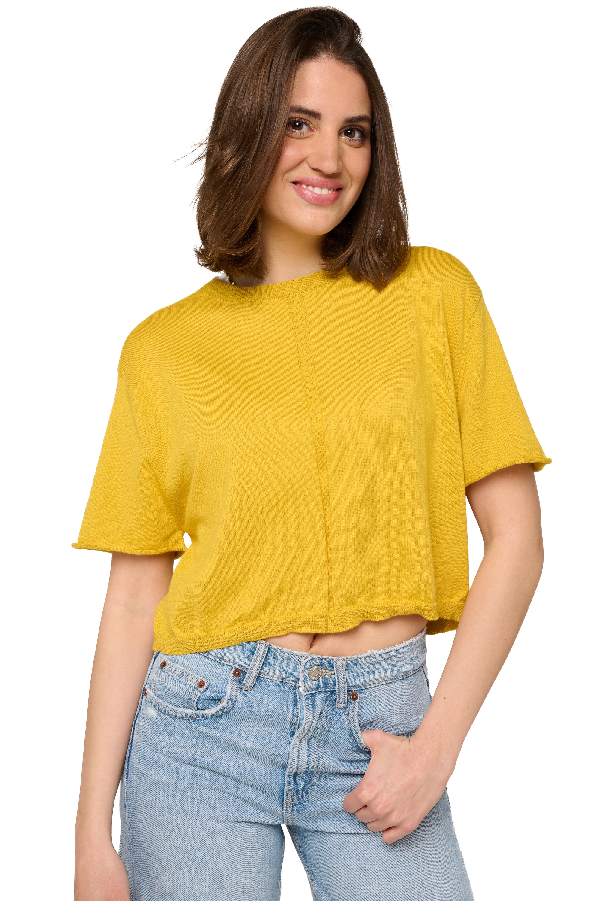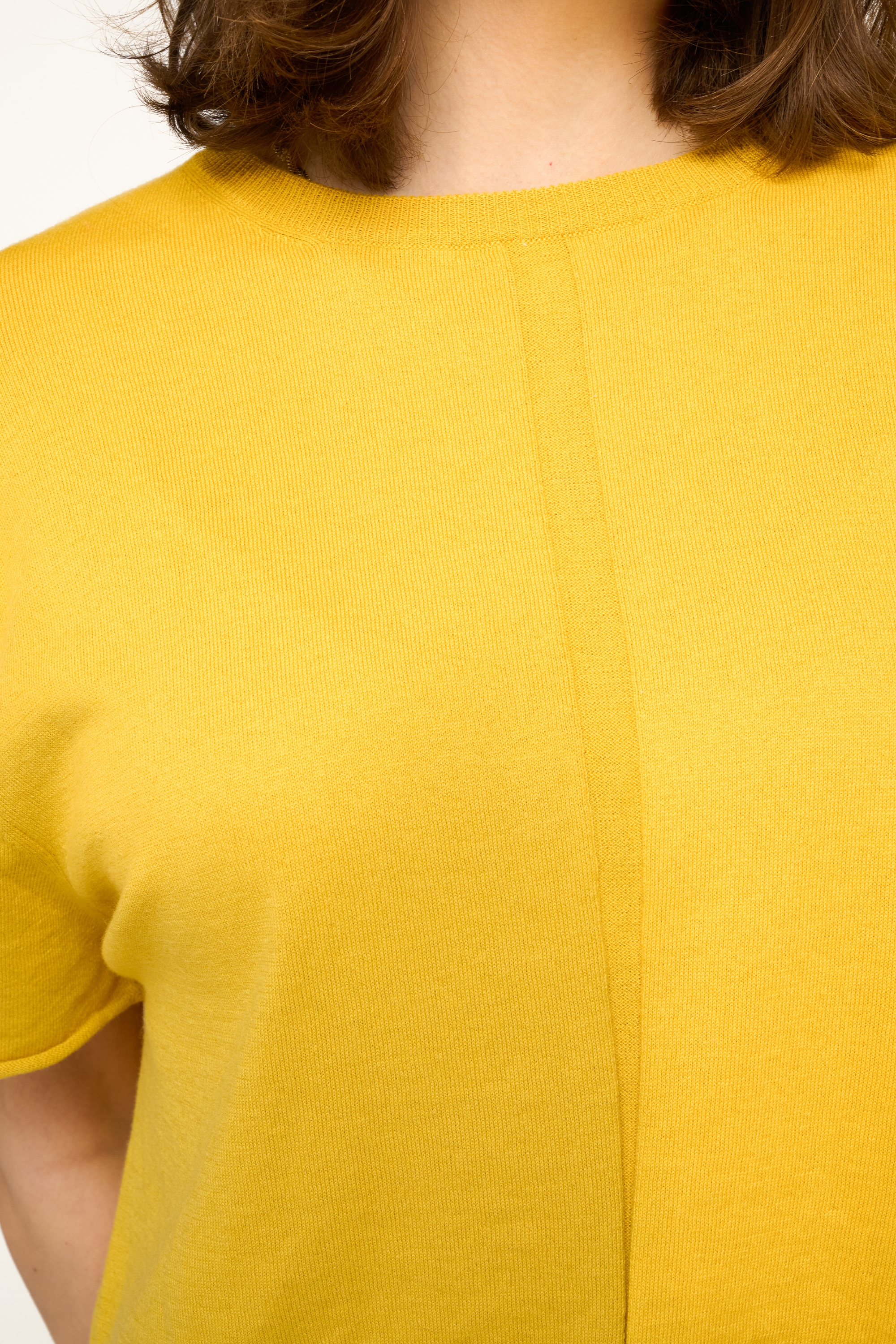 T-shirt girocollo crop. Il taglio corto è perfetto da indossare con indumenti a vita alta.