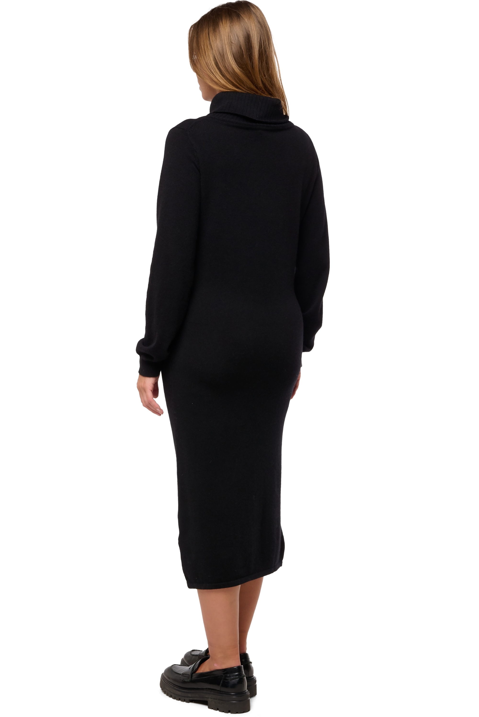 Abito tre quarti con largo collo alto. Comodissimo da indossare per un total look di cashmere. Un taglio dritto che sposa il corpo senza segnare le forme.
