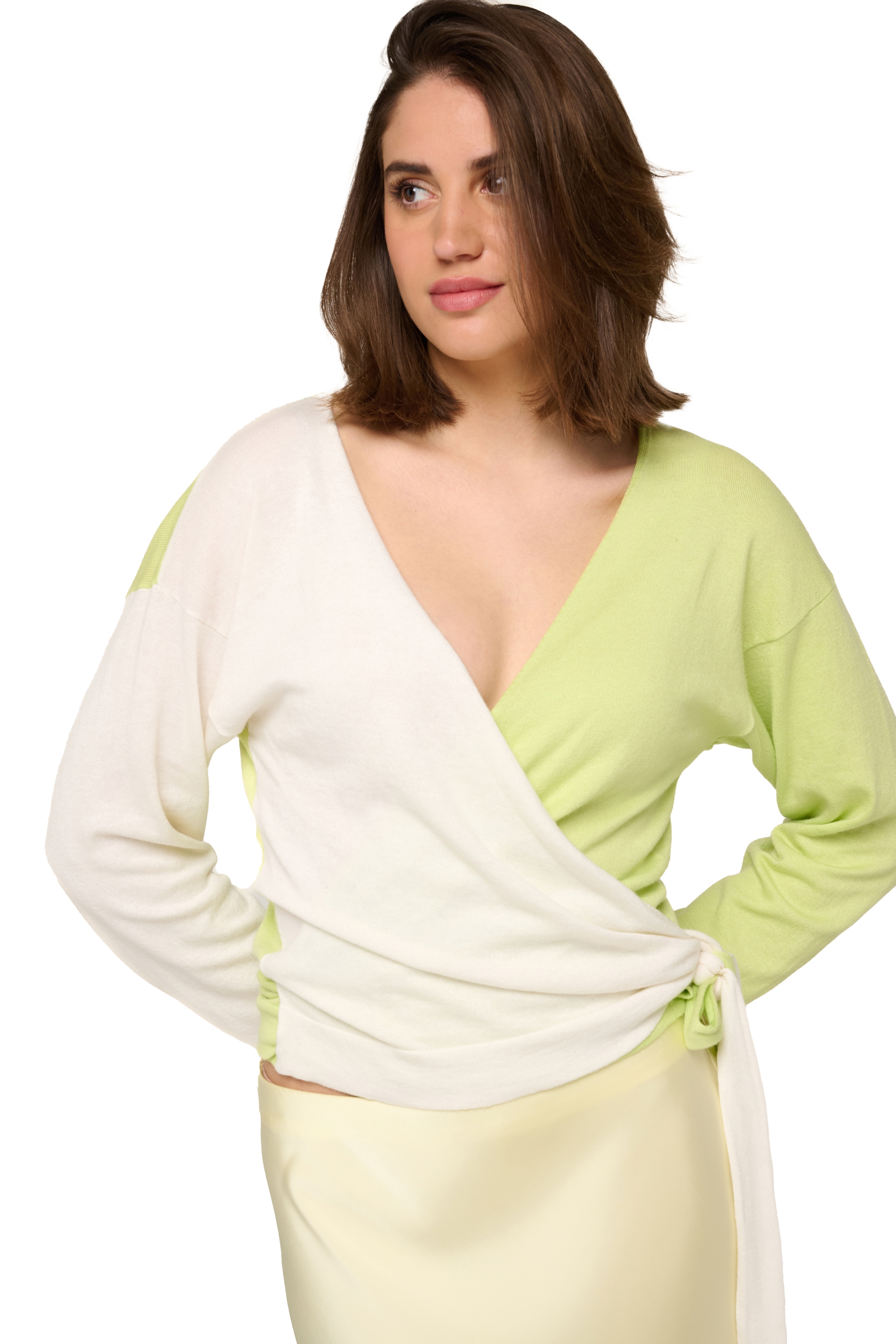 Rivisitazione del classico scaldacuore, questa maglia bicolor si allaccia a sinistra o a destra, in... Più info