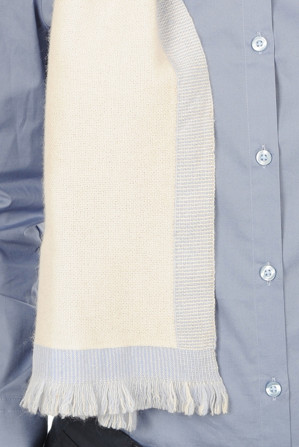 Tessuta in 2 colori che formano un motivo a striscie sui bordi e restituiscono un effetto chiné/vanisé al centro.