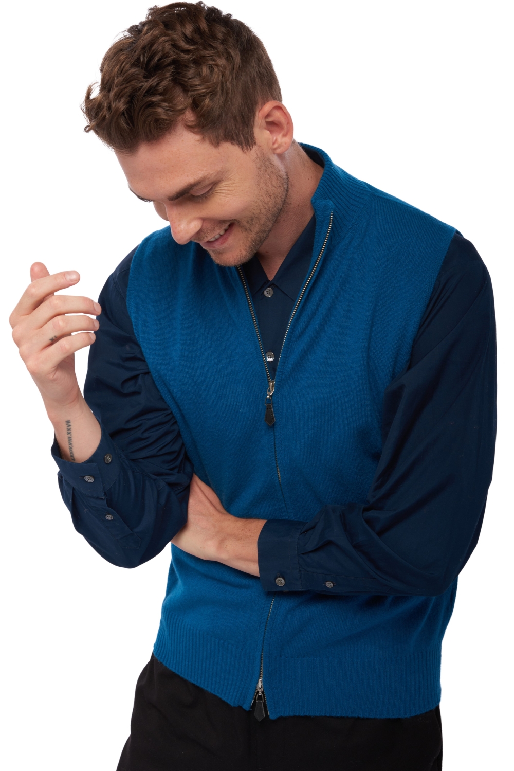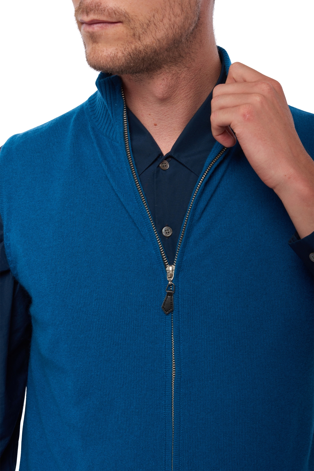 Gilet a zip. Rifiniture a coste da 8 cm alla base della maglia.