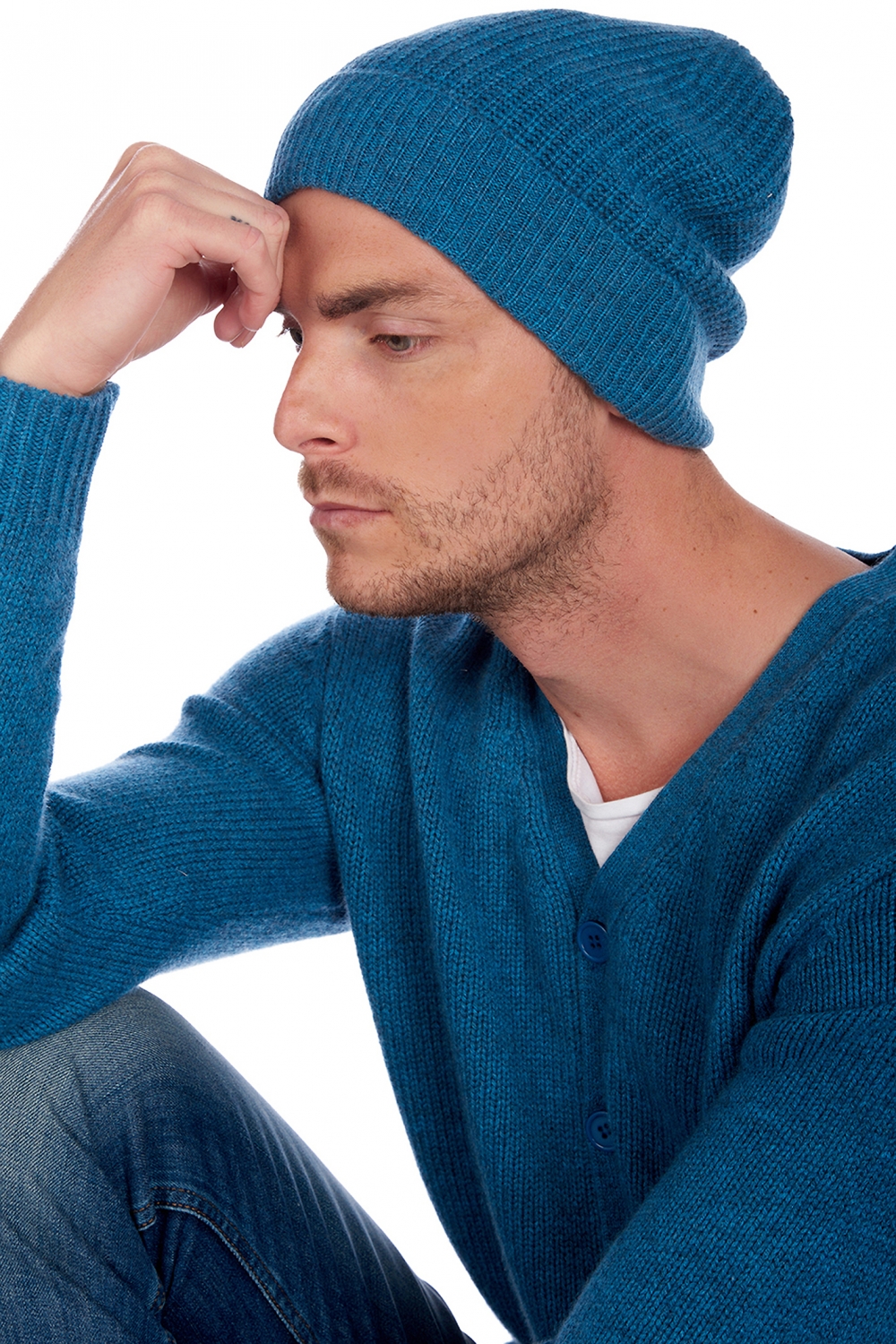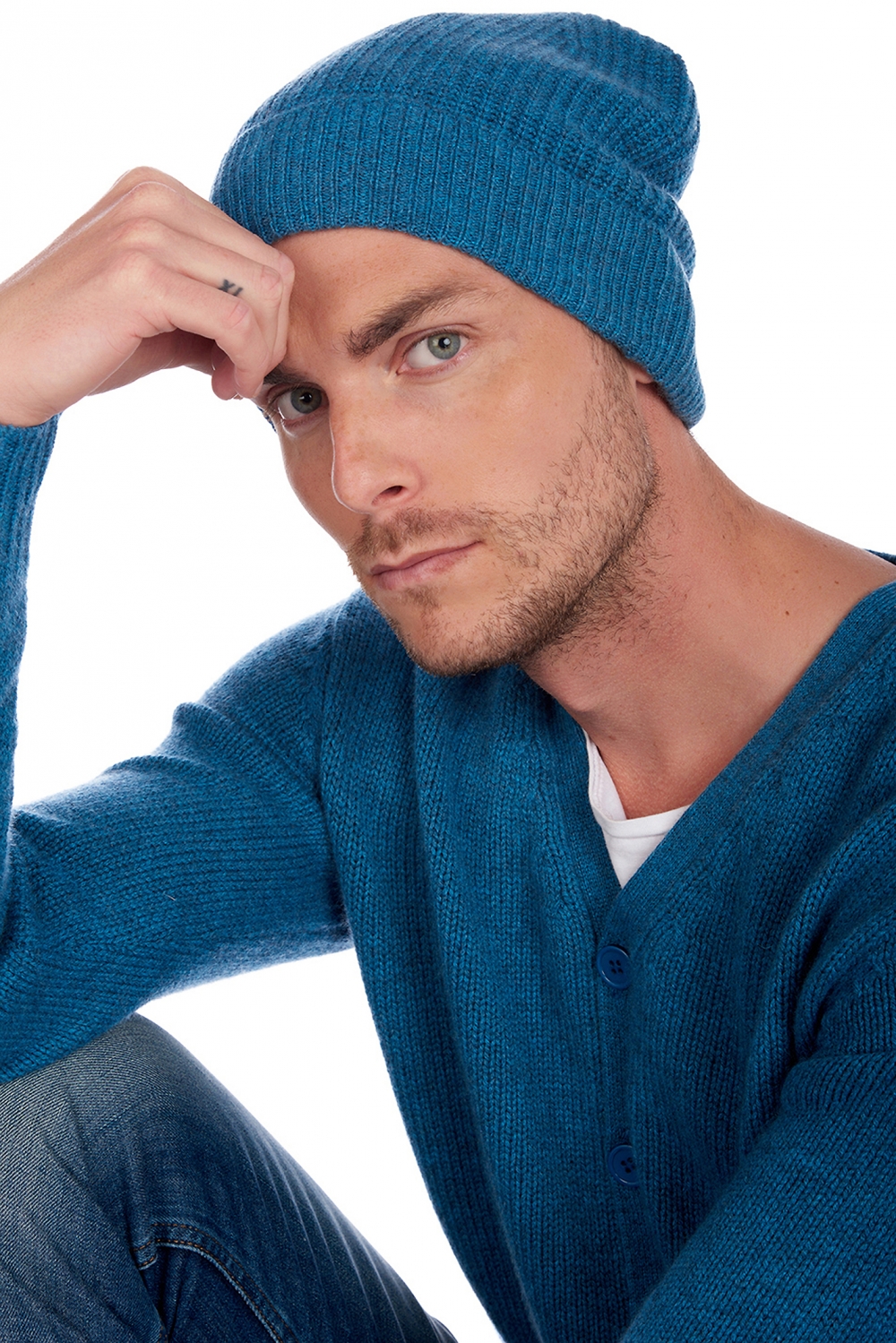 Berretto in cashmere a coste, risvolto a coste 1x1.